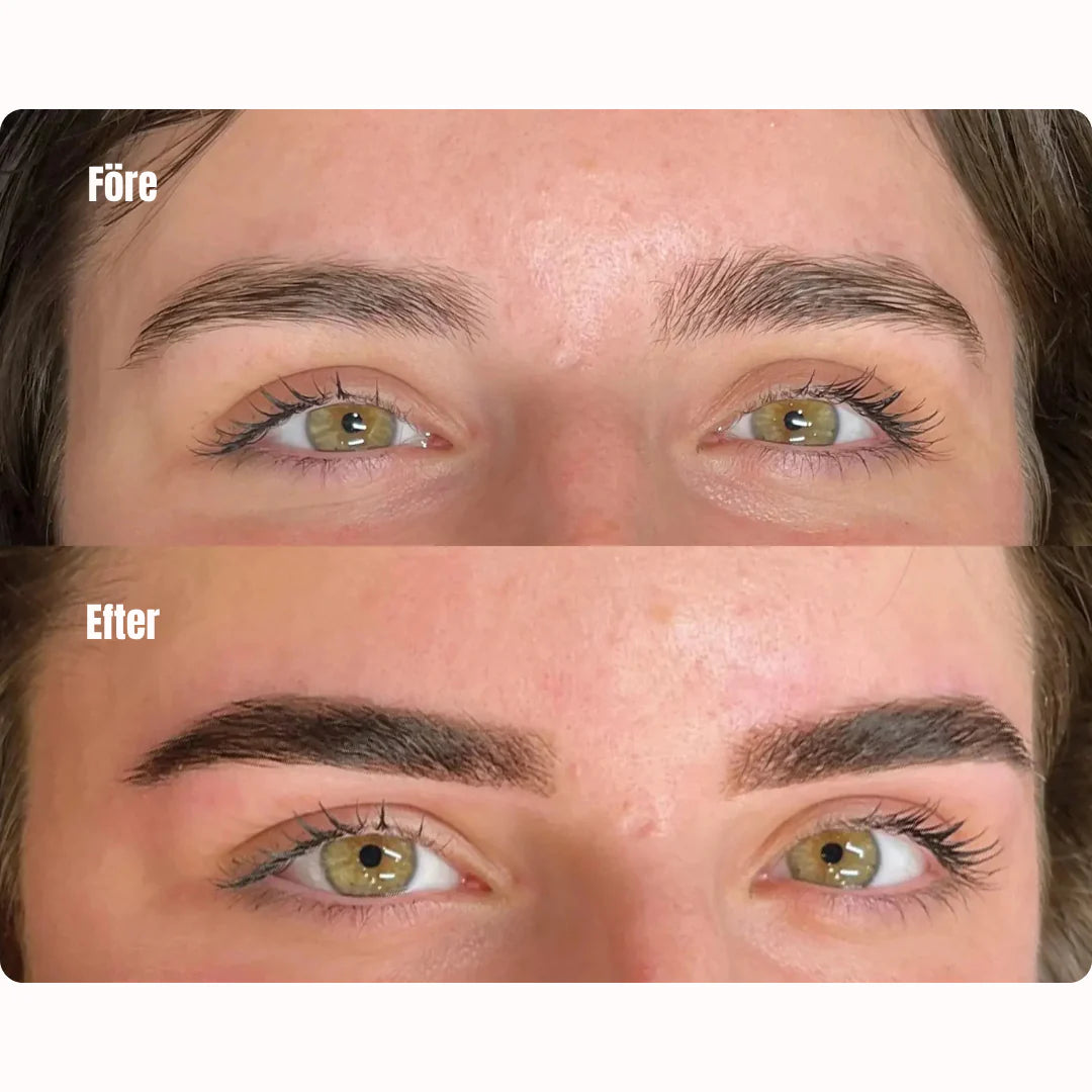 – Påfør på rene, tørre øjenbryn og lad det sidde i mindst 1–2 timer.