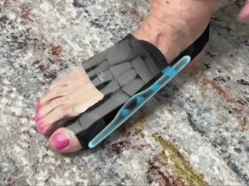 Beskytteren passer dårligt i sko på grund af metalskinnen på siden af tåen. Den er mest velegnet til rolige aktiviteter såsom at slappe af på sofaen, se tv, læse eller sove. Du kan også bære den derhjemme med hjemmesko eller sandaler.