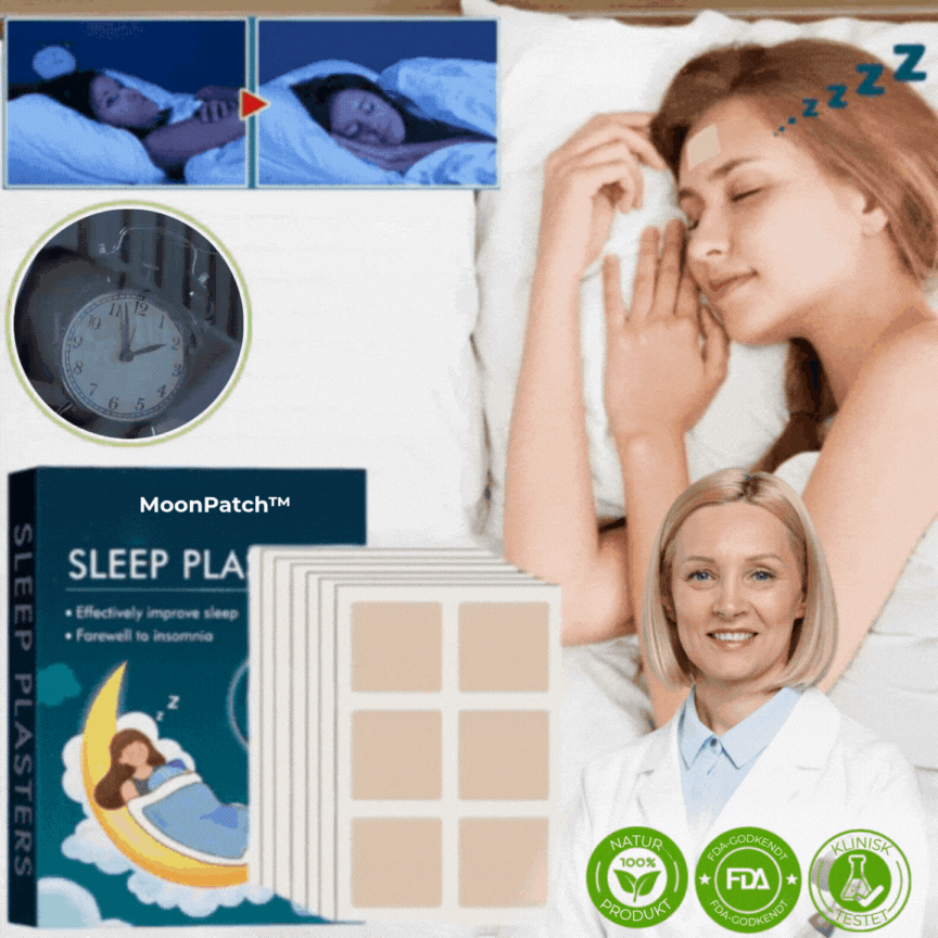 Denne søvnplaster (eller: MoonPatch™) hjælper dig med at falde hurtigere i søvn og sove dybt hele natten igennem. Takket være naturlige ingredienser som melatonin og planteekstrakter kan din krop endelig slappe af.