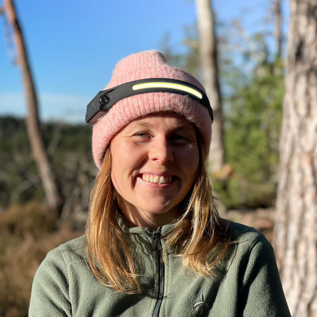Vores pandelampe er genopladelig via USB-C, har en pasform, der er nem at justere, er vandtæt og har 2 forskellige typer lys.