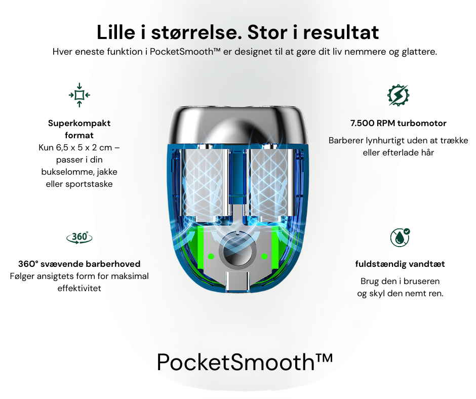 PocketSmooth™– Hurtig, glat og skånsom barbering på kun 60 sekunder