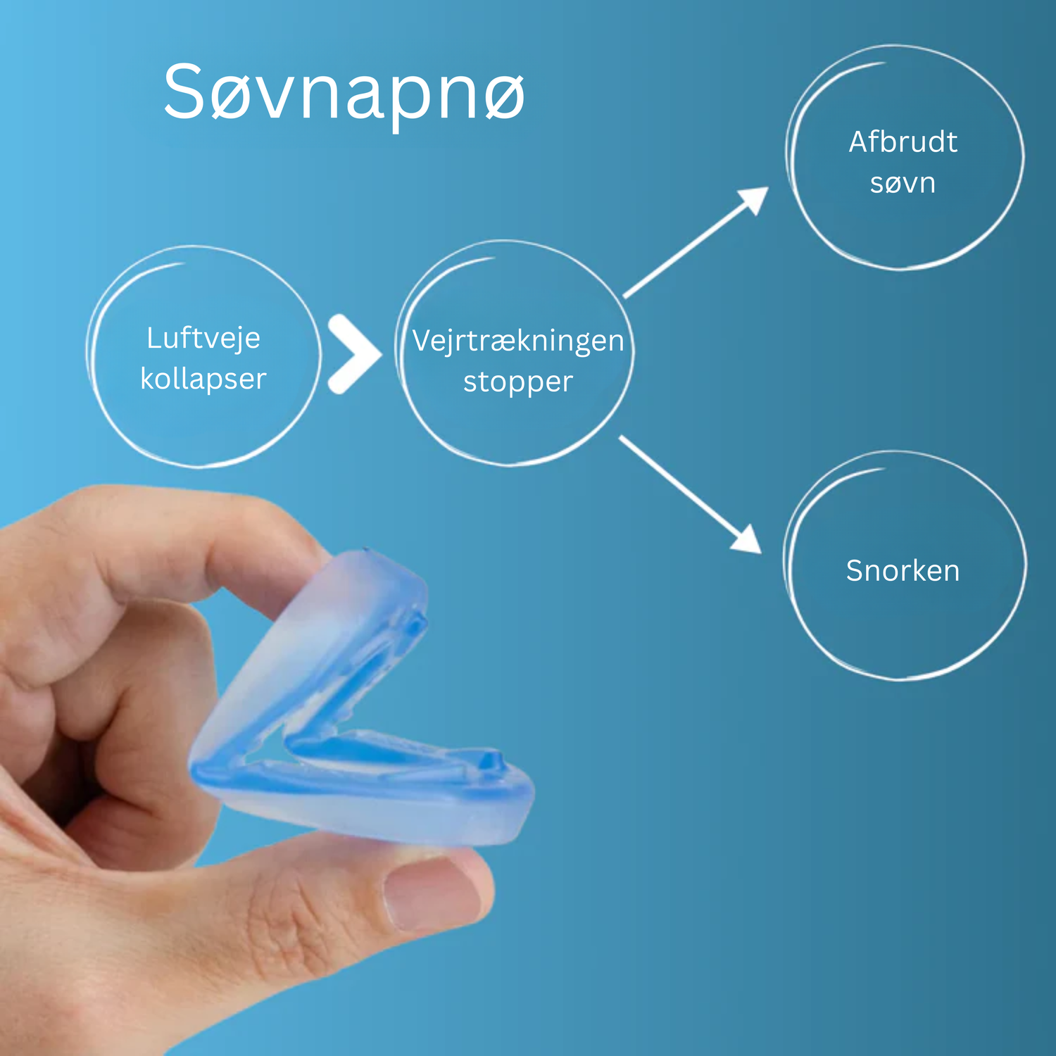 Ved at stabilisere tungens og underkæbens position forhindrer den, at blødt væv i svælget klapper sammen, hvilket er en hyppig årsag til vejrtrækningspauser. Dette fremmer en stabil ilttilførsel og hjælper med at reducere træthed i dagtimerne samt morgen-hovedpine.